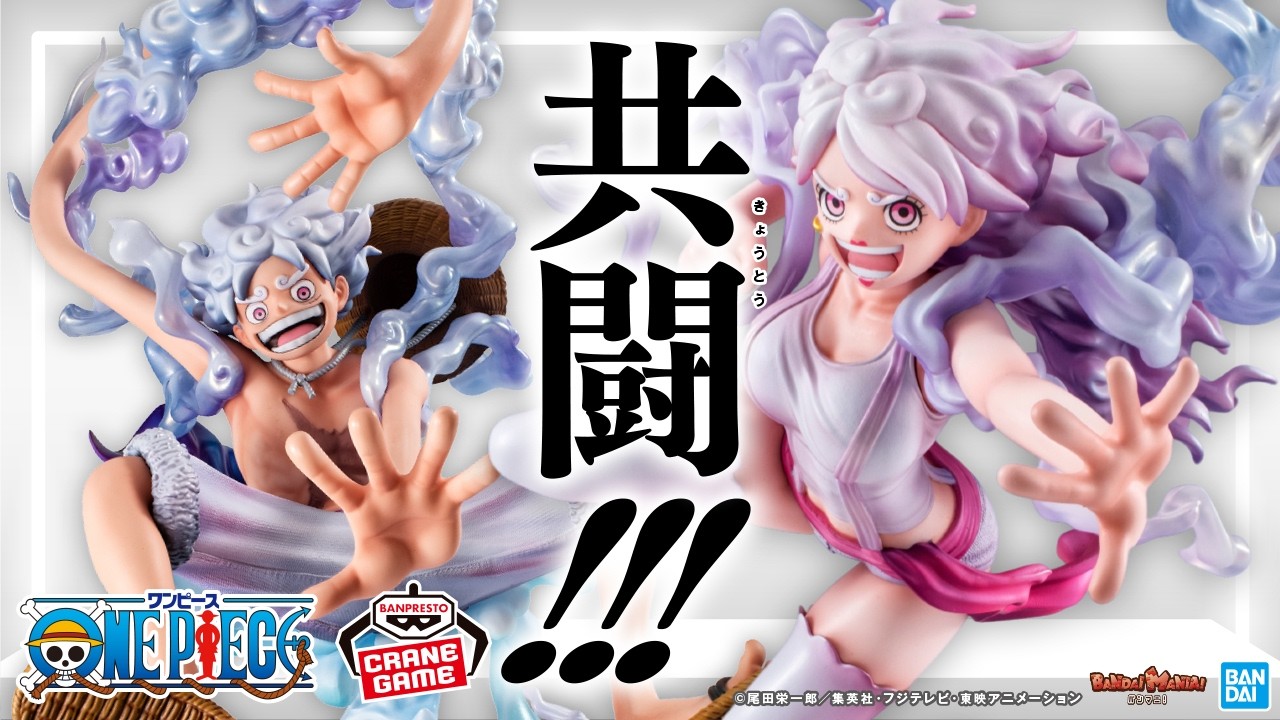 “Evolutionary History”7弾は、〝一番自由な未来〟姿のジュエリー・ボニーとともに戦う〝ギア5〟ルフィです。動画の最後では、ついに2体を並べたショットが…!
